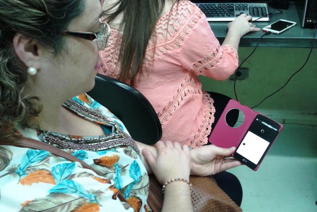 | Participantes do curso na DRE Ipiranga experimentam o uso das redes sociais no celular |
